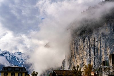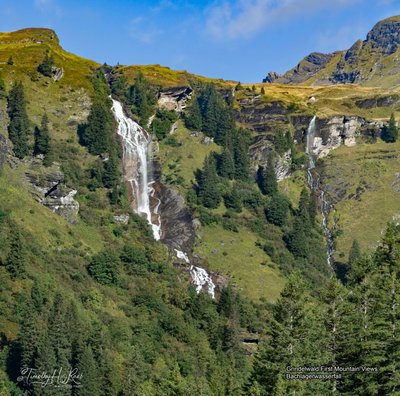 Staubbach Falls, a prominent waterfall located in the Lauterbrunnen Valley of Switzerland